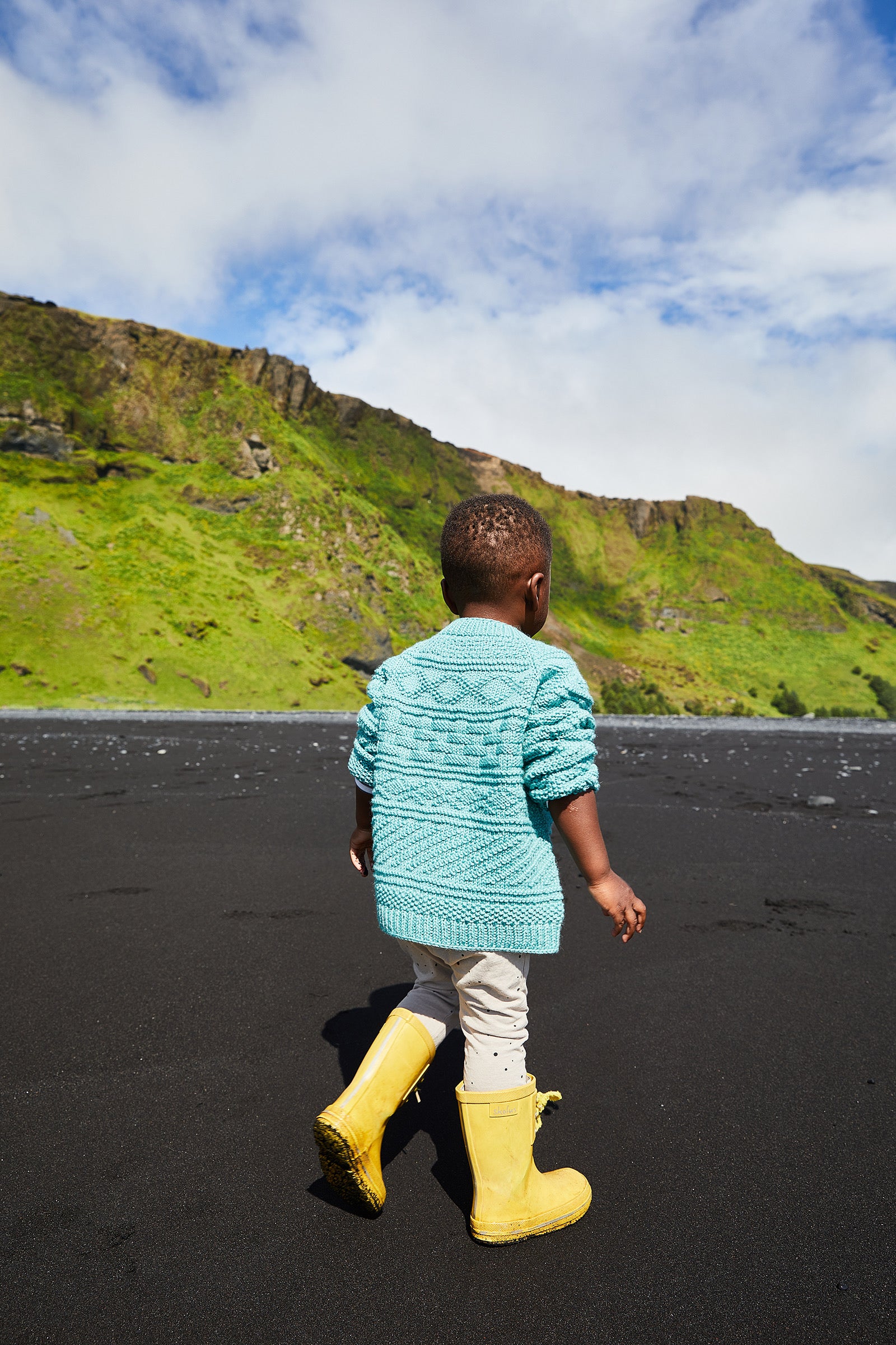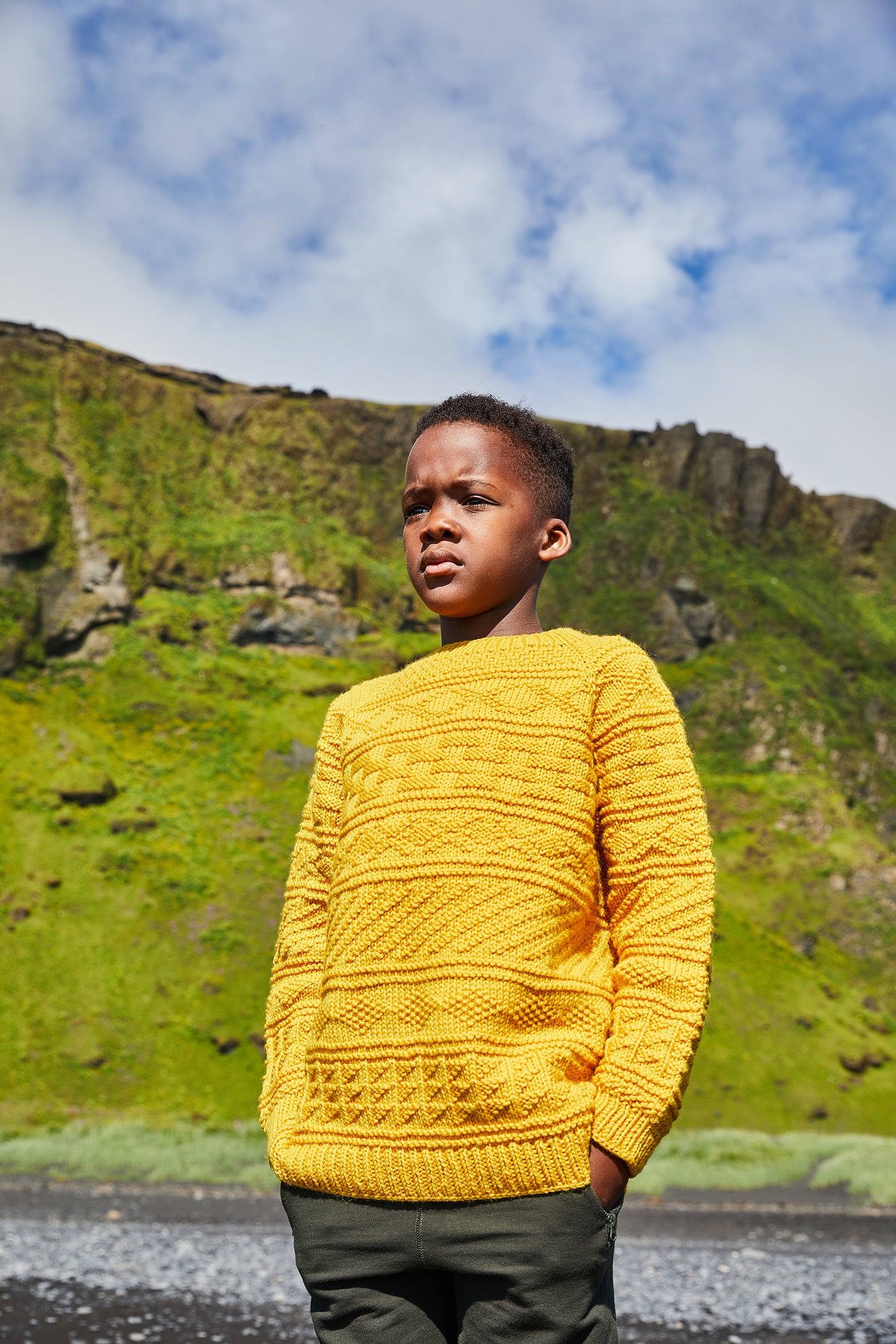 Litli Skipperinn er barnaútgáfa af herrapeysunni Skippernum sem kom út í september 2021. Ég var alltaf með það á bak við eyrað að gera hana líka fyrir börn því það er eitthvað krúttlegt við það að pabbar eða jafnvel afar og börn séu í stíl. Peysan er í duggarastíl með áhrifum frá Guernsey. Prjónuð ofan frá og niður með laskaútaukningum. Einlit en mynstruð og mynstur samanstendur eingöngu af sléttum og brugðunum lykkjum. Athugið að bolurinn er mismunandi eftir stærðum, þ.e. mismunandi hversu mörg mynstur eru prjónuð. Ég mæli með að lesa uppskriftina yfir áður en þú byrjar, hún þarfnast athygli þar sem hún er eitt stórt mynstur.