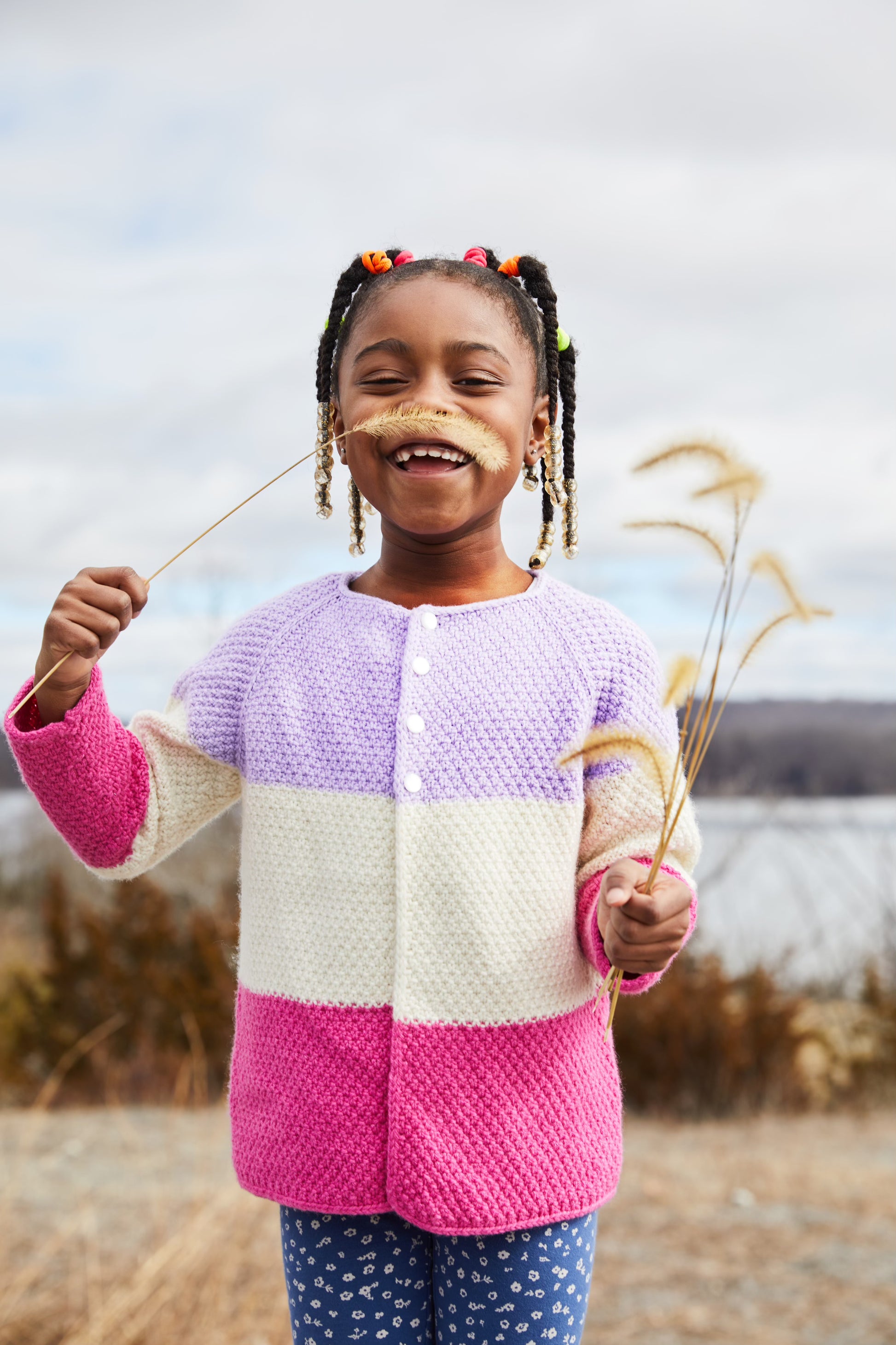 Hugmyndir koma til mín úr öllum áttum. Stundum sé ég mynd í blaði og stundum er það eitthvað í sjónvarpinu sem vekur þær upp en hugmyndin að þessari peysu kom eitt kvöldið þegar ég var að fá mér ís. Hérna í Hollandi fæst skafís sem er þrílitur, hvítur, brúnn og bleikur og þegar ég horfði ofan í ísdallinn hugsaði ég með mér að þetta gæti verið sniðugur útgangspunktur fyrir peysu. Síðan þá er hugmyndin búin að malla í höfðinu á mér eins og þær gera flestar og taka ýmsum breytingum. Napólí gollan er prjónuð ofan frá og niður með perluprjóni. Laskaútaukningar og stílhrein útfærsla á uppfiti og affellingum. Tölu- og hnappagatalistar prjónaðir samhliða. Ég mæli með að lesa yfir uppskriftina í heild áður en þú byrjar.