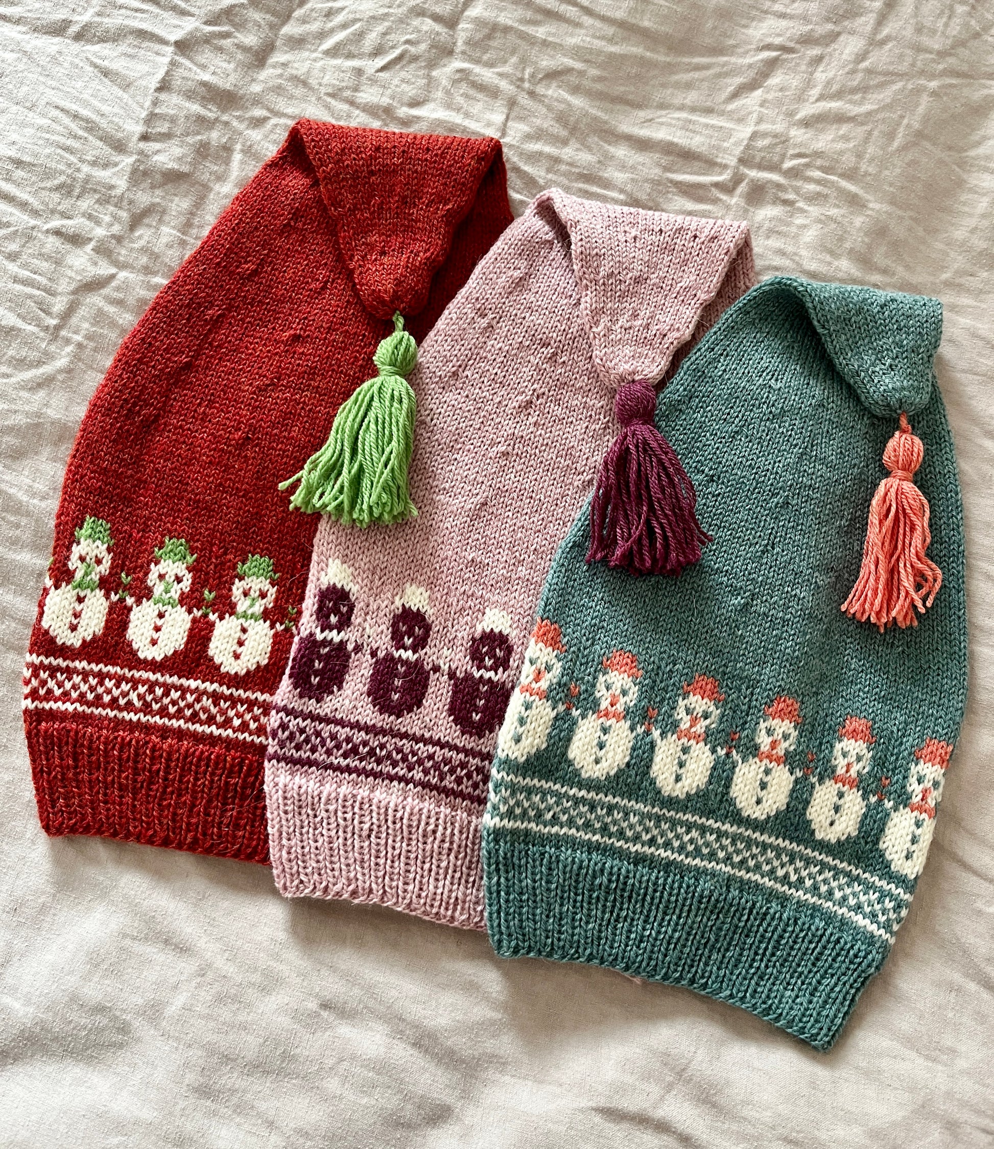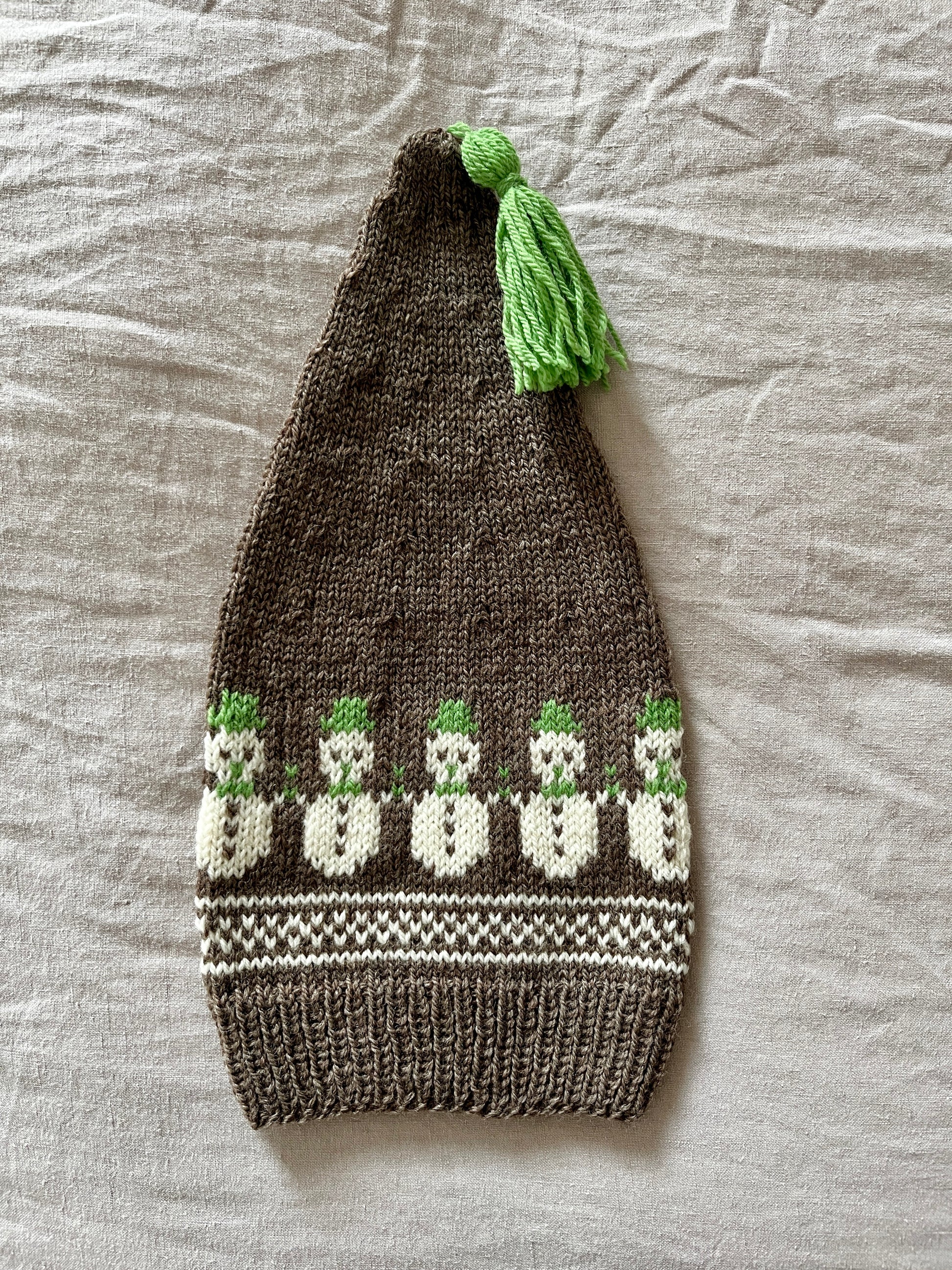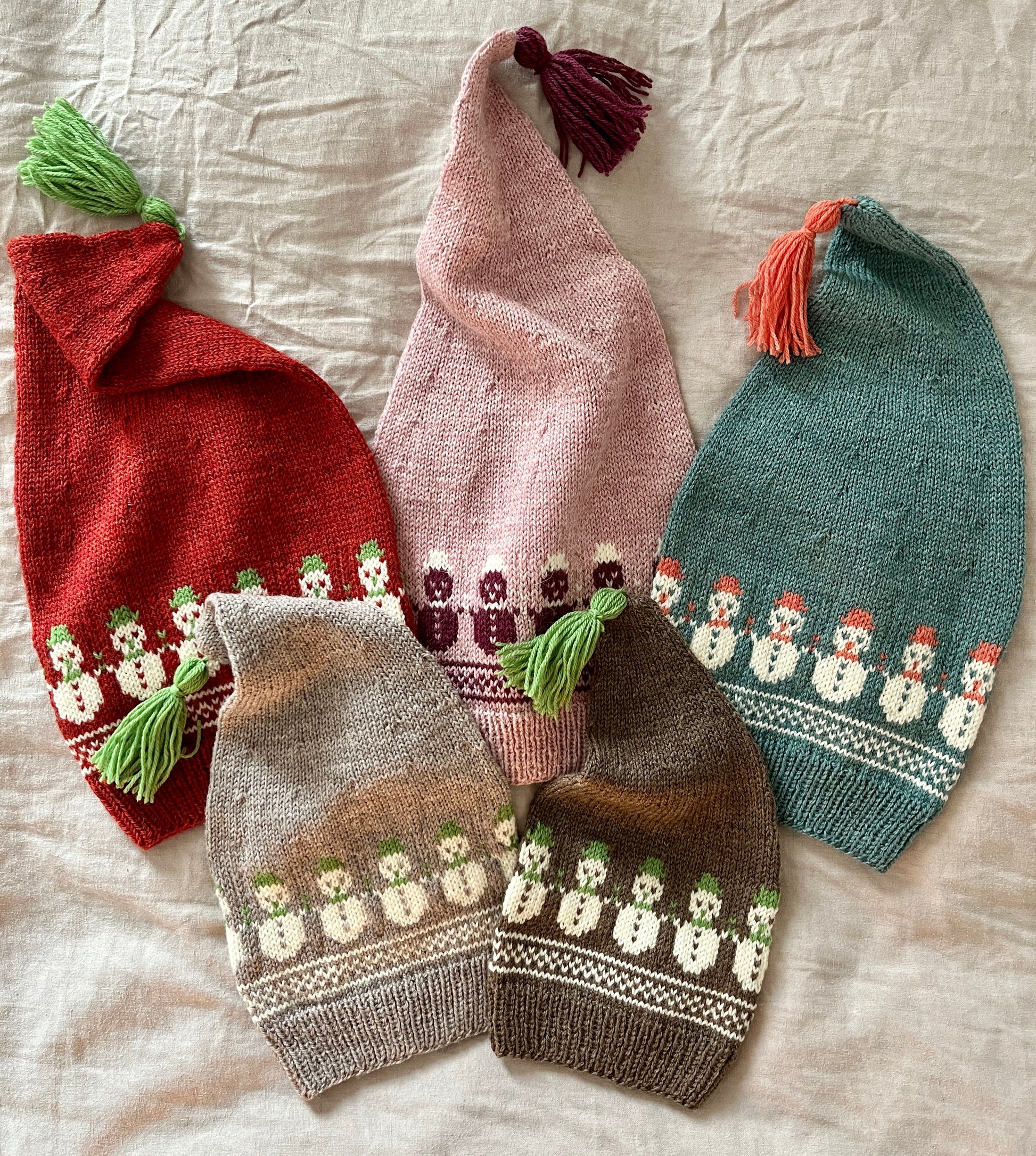 Í fyrra fékk ég þá flugu í höfuðið að prjóna jólahúfur fyrir systurbörnin mín þrjú, teiknaði upp mynstur og mótaði hugmyndina en var einhvern veginn of sein að byrja fyrir jólin þannig að uppskriftin dagaði bara uppi hjá mér. Ég tók mynstrið svo fram núna á dögunum og prjónaði húfur eins og vindurinn, svo auðvelt og skemmtilegt verkefni. Snæfinnur er með krúttlegu snjókarlamynstri, lagi eins og á jólasveinahúfu og sætum skúf. Það er tilvalið að nota afganga í mynstrið því það þarf ekki mikið, sérstaklega af mynsturlit 2 og svo er auðvitað hægt að bæta við litum ef vill. Ég mæli með að lesa uppskriftina yfir áður en þú byrjar.