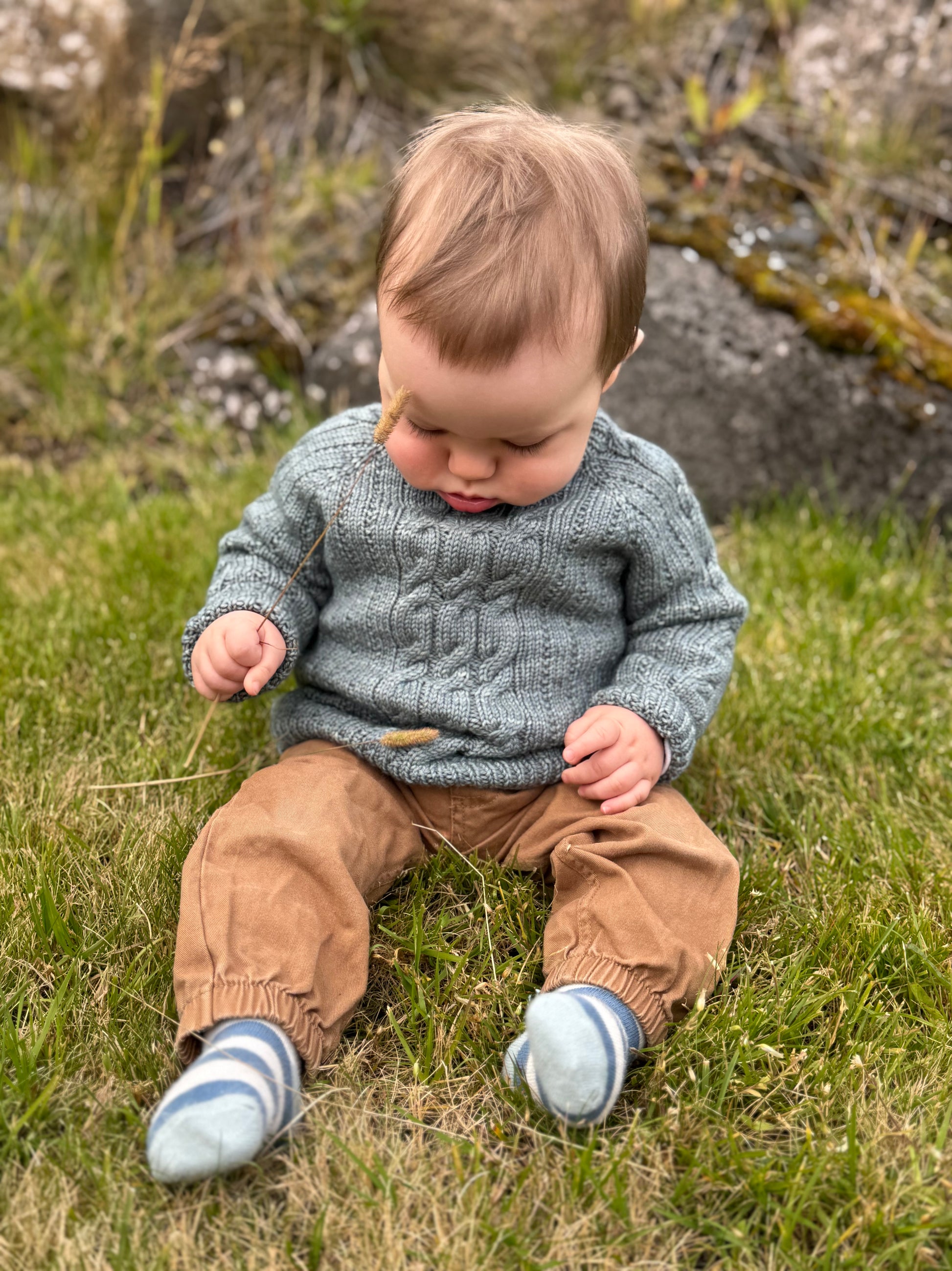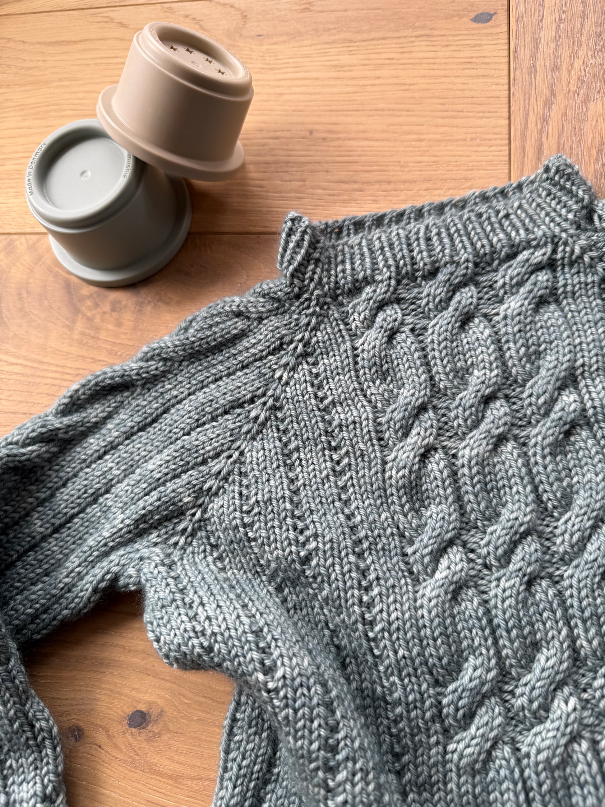 Í febrúar síðastliðnum (2023) fékk ég tölvupóst frá vinkonu minni hjá Tinnu ehf. þar sem hún sagði mér frá nýju garni sem þær væru að taka inn og spurði hvort ég hefði áhuga á samstarfi og þá að prófa nýja garnið og skrifa uppskrift fyrir það. Ég hélt það nú, lagðist í hugmyndavinnu og prufur og hér er Tinnupeysa no. 1, sem er afraksturinn af þeirri vinnu. Peysan er prjónuð ofan frá og niður, í hring með laskaútaukningum, köðlum á framstykki og niður báðar ermar. Á bakstykki og alls staðar þar sem ekki eru kaðlar eru rendur sem eru myndaðar með sléttum og brugðnum lykkjum. Ég mæli með að lesa uppskriftina yfir í heild áður en þú byrjar.